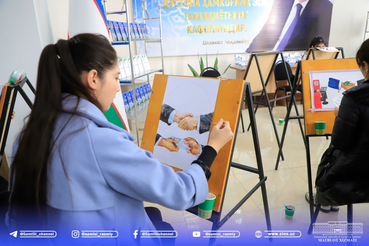 Bugun Samarqand iqtisodiyot va servis instituti axborot-resurs markazida talaba-yoshlaring korrupsiya holatlariga qarshi bilim va malakalarini oshirish maqsadida “Yoshlar korrupsiyaga yo‘q deydi” mavzusida “Eng yaxshi rasmlar” tanlovi bo‘lib o‘tdi.