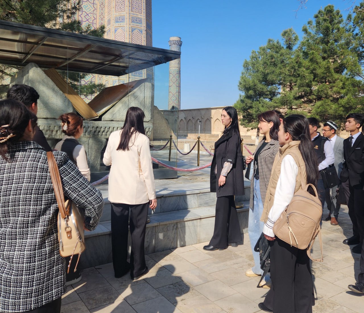 Samarqand iqtisodiyot va servis instituti tillarni o‘qitish kafedrasi o‘qituvchisi N.Axmedova tashabbusi bilan 1-bosqich talabalari ishtirokida Samarqand shahrining diqqatga sazovor joylariga ekskursiya ko'rinishidagi amaliy darslar tashkil etildi. Mazkur ekskursiyada talabalar xorijlik sayyohlar bilan muloqot qilish imkoniyatiga ega bo'lishdi.