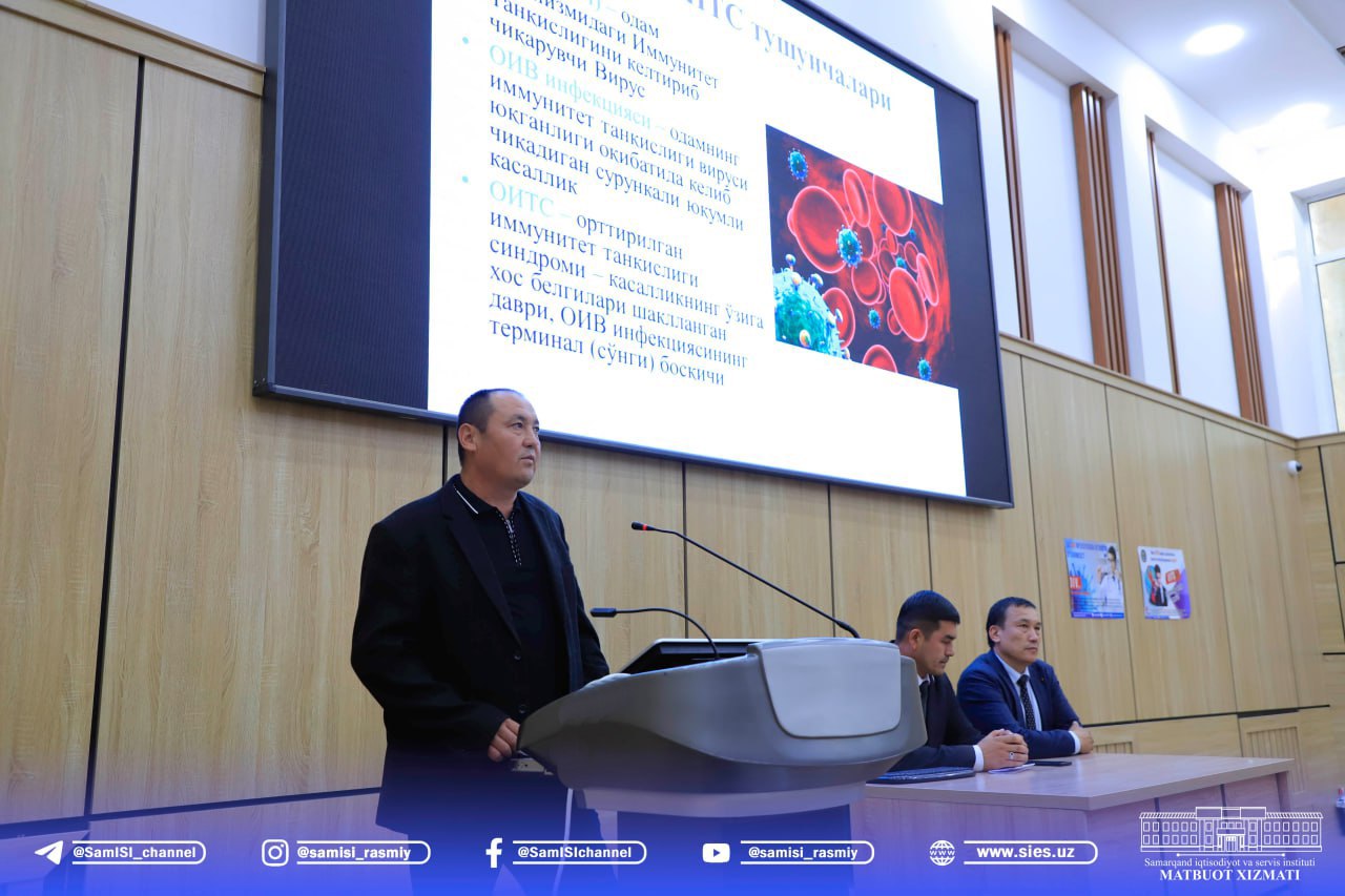 Samarqand iqtisodiyot va servis instituti ikkinchi va kechki ta'lim bo'limi talabalari ishtirokida "Giyohvandlik va OITS — asr vabosi" mavzusida davra suhbati bo'lib o'tdi.