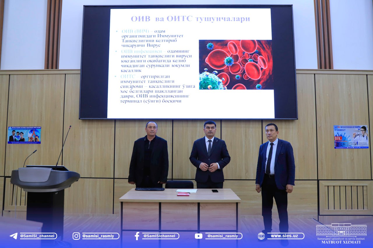 Unda viloyat OITSga qarshi kurashish markazi vrach-epidemiologi O.Ro'zimurodov hamda institut mas'ullari tomonidan talabalarga mavzu yuzasidan ma'lumot va tushunchalar berib o'tildi.