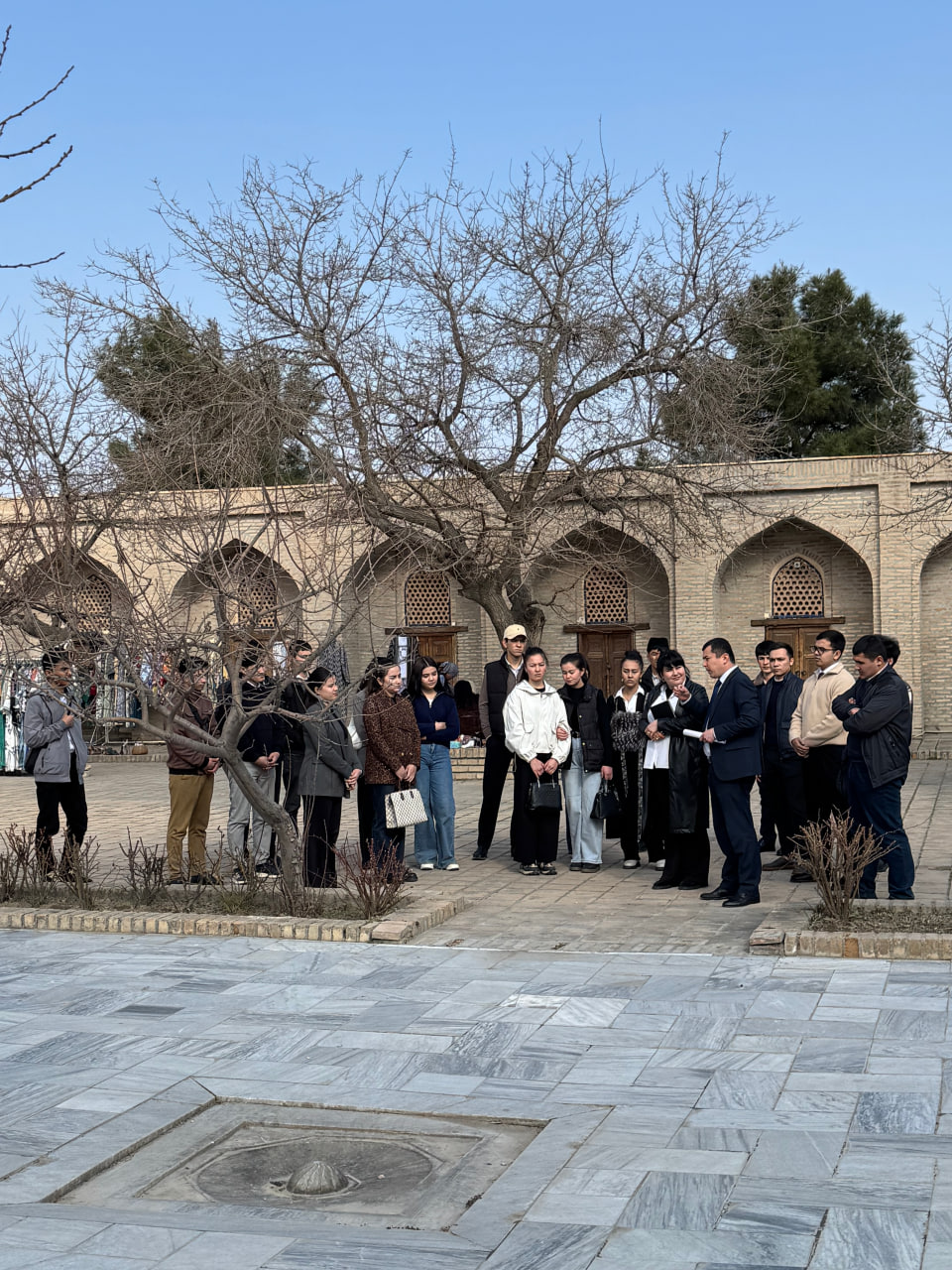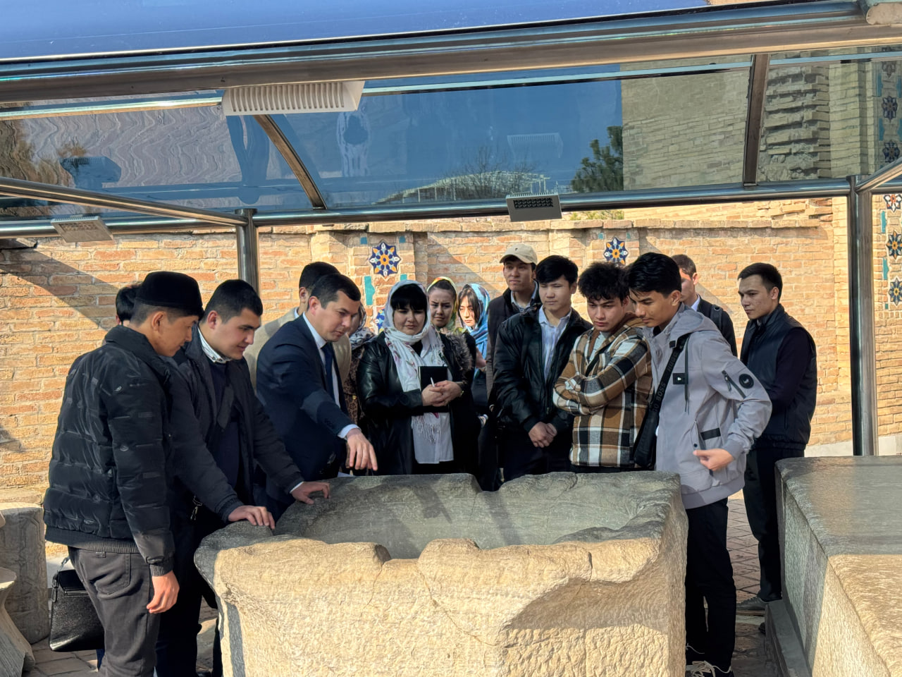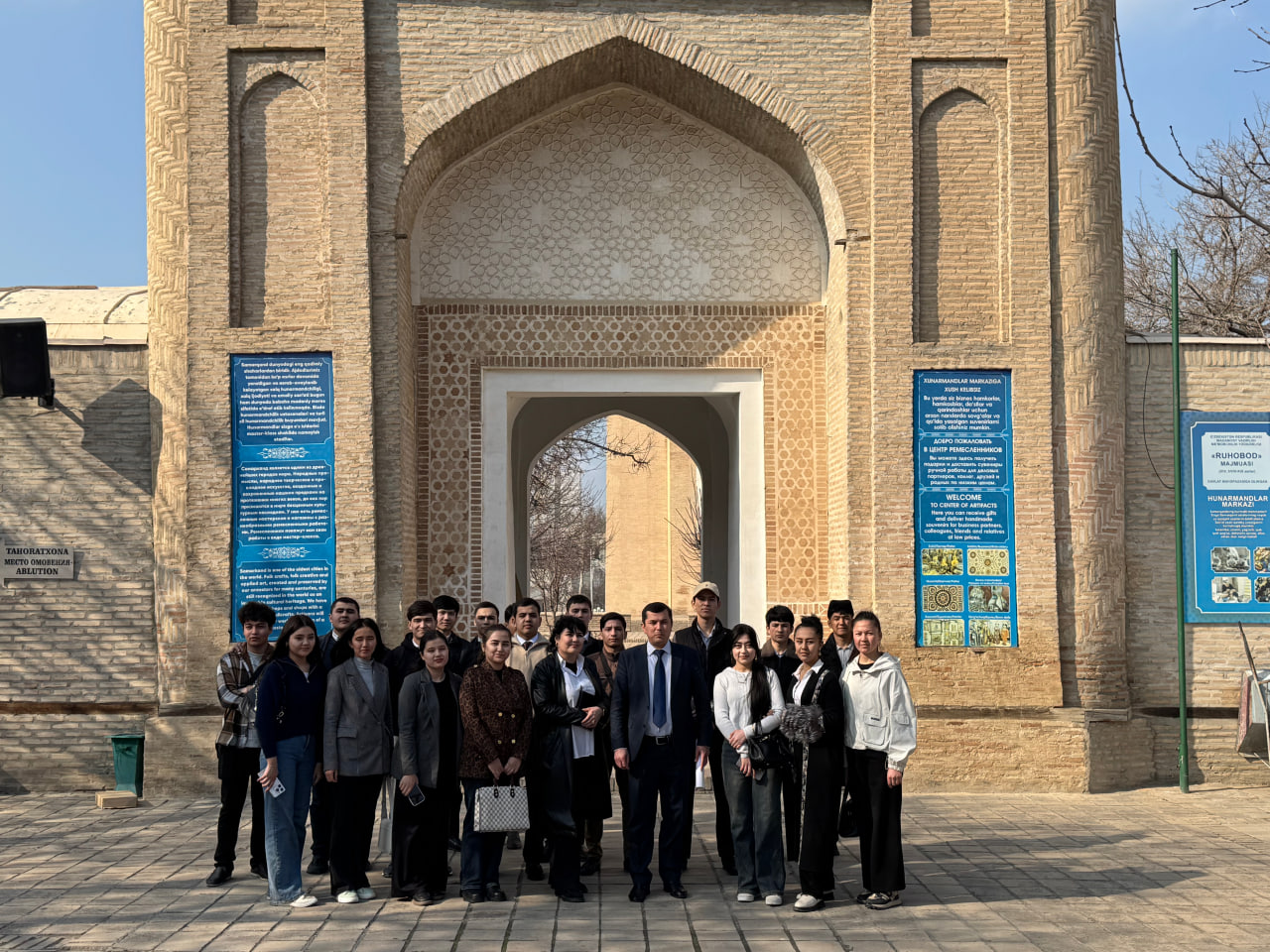 Talabalarning nazariy bilimlarini amaliyot bilan mustahkamlash maqsadida turizm kafedrasi dotsenti v.b. M.Xamitov va servis fakulteti tyutori M.Dustovalar tomonidan Samarqand shahrida joylashgan “Amir Temur maqbarasi”da ekskursiyashunoslik va gid hamrohligi fanining “O‘zbekistonning tarixiy-arxitektura yodgorliklariga ekskursiya xizmatini tashkil qilish” mavzusi bo‘yicha ekskursiya amaliy darsi tashkil etildi. Ekskursiya davomida talabalar o'zlarini qiziqtirgan savollarga javob olishdi.