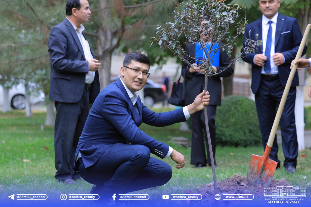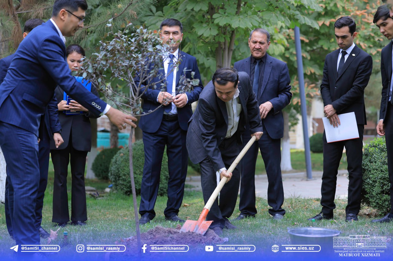 Tashrifning ilk qismini "Yashil makon" umummilliy loyihasi doirasida institut hududiga ekilgan ramziy koʻchat ekish marosimi yakunlab berdi.