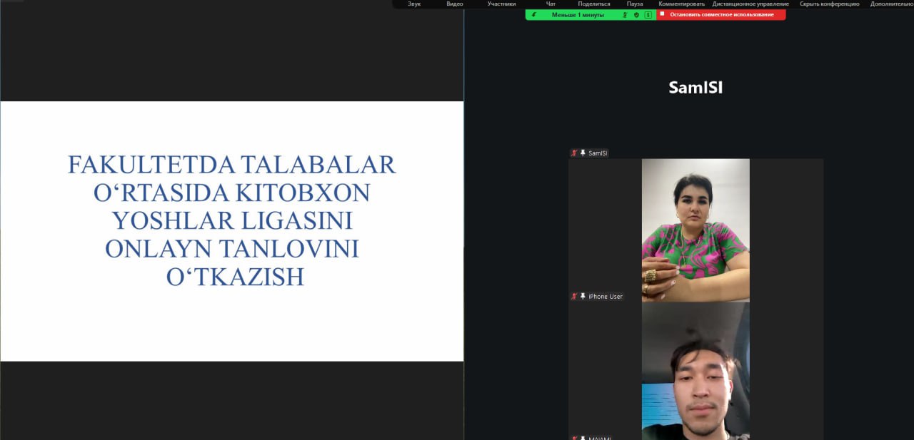 Talabalarning boʻsh vaqtlarini mazmunli tashkil etish hamda ma'naviy bilimlarini yanada oshirish maqsadida servis fakulteti tyutori M.Dustova tashabbusi bilan “Kitobxon yoshlar ligasi” oʻtkazildi. Tadbirda talabalar ilmiy va badiiy asarlar, ularning mualliflari va kitobxonlikdagi taassurotlari bilan o‘rtoqlashdi.