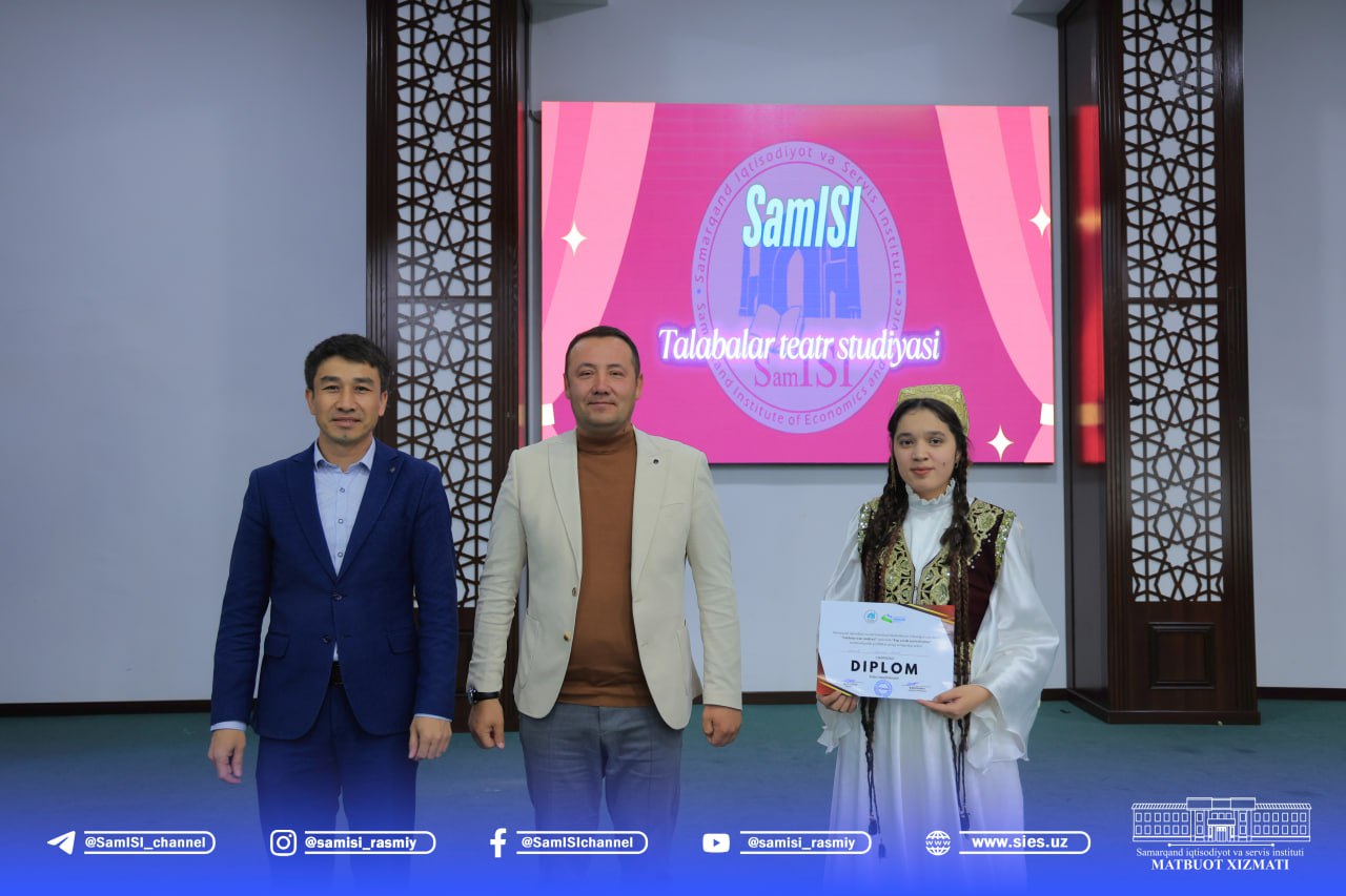 "Dolzarb mavzuning sahnaviy talqini" – Iqtisodiyot fakulteti jamoasi;
