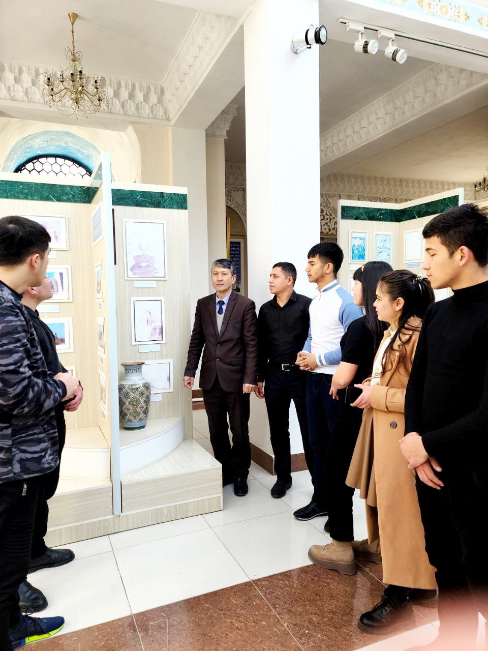 28-yanvar kuni "O'zbek tili va adabiyoti" kafedrasi katta o'qituvchisi Z. Ashurova 2022-2023-o'quv yilida "Notiqlik san'ati" to'garagiga qabul qilingan iqtidorli talabalar bilan Samarqand viloyati O'lkashunoslik muzeyi hamda Samarqand davlat universiteti ilmiy-amaliy muzey laboratoriyasiga tashrif buyurishib, mashg'ulot olib bordi. Servis fakulteti MR-222, Sat -222 guruh talabalarining bir qancha ijodiy ishlari bilan tanishib chiqildi. SAT-222 guruhi tyutori U.Sharopov "Iqtidorli talabalar- institut iftixori" mavzusida nutq so'zlab, guruh talabalarini institut miqyosida tashkil etilgan to'garaklarga jalb qilinishi haqida to'xtalib o'tdi.