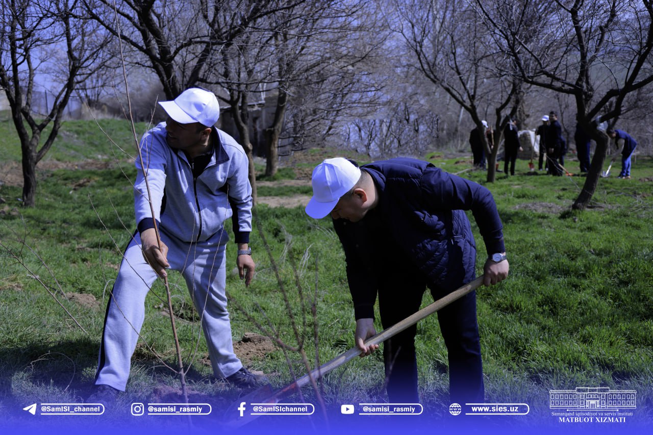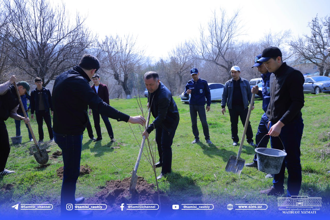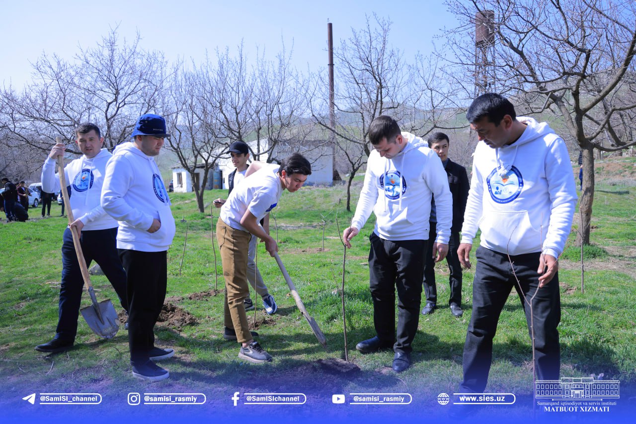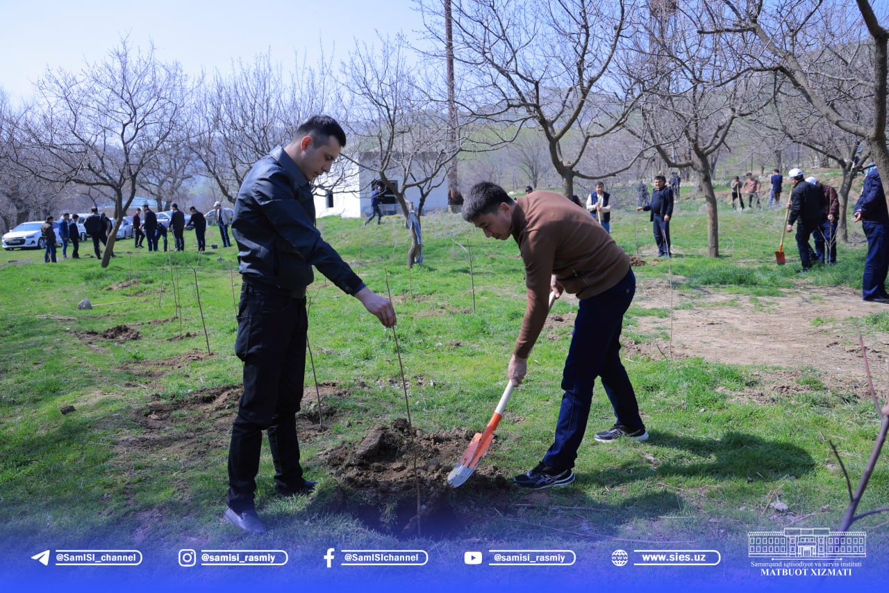 Сегодня Самаркандский институт экономики и сервиса также принял участие в республиканском марафоне по посадке деревьев, стартовавшем в Джизаке.