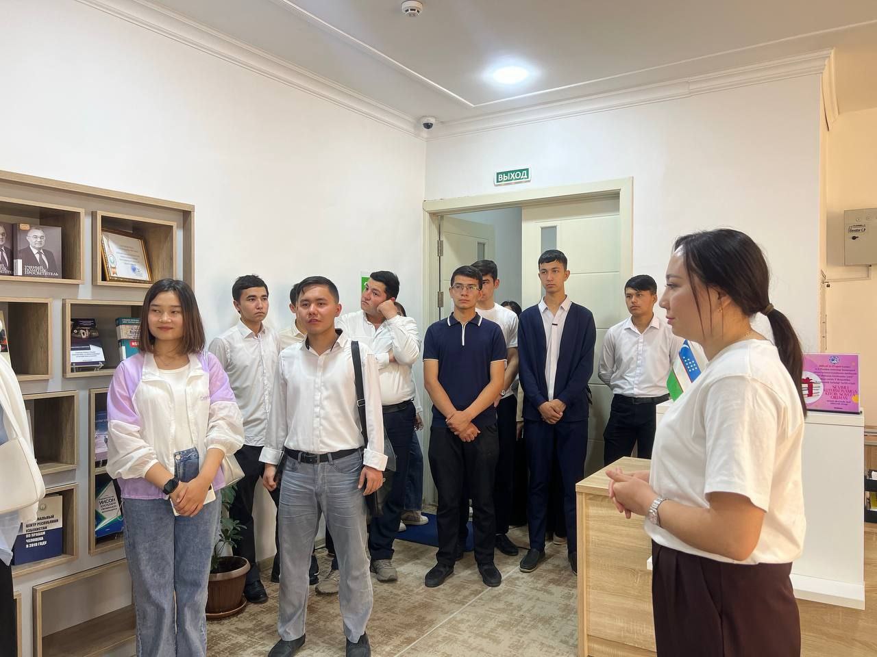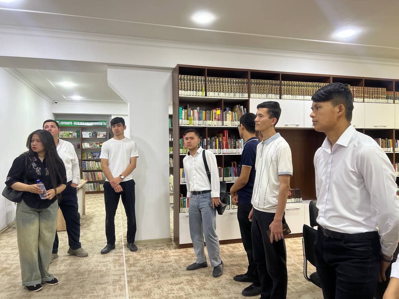 Tashrif davomida talabalar kutubxona faoliyati bilan yaqindan tanishib, u yerda yaratilgan zamonaviy sharoitlar, axborot-resurslardan foydalanish imkoniyatlari hamda mavjud adabiyotlar fondi haqida batafsil ma'lumotlarga ega bo‘lishdi.