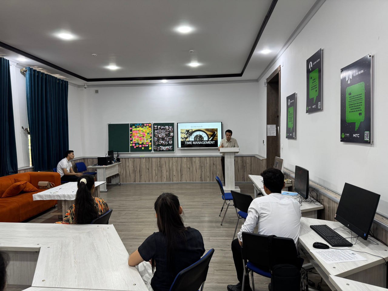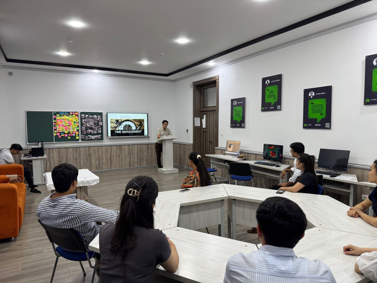 Ishtirokchilar vaqtni to‘g‘ri taqsimlash, ustuvor vazifalarni aniqlash, “SMART” maqsadlar qo‘yish va “Pomodoro” usuli orqali ish samaradorligini oshirish sirlari o‘rgatildi.